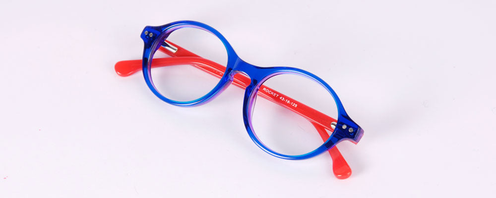 Gafas para ordenador de niño sin graduación en acetato premium rojo/azul